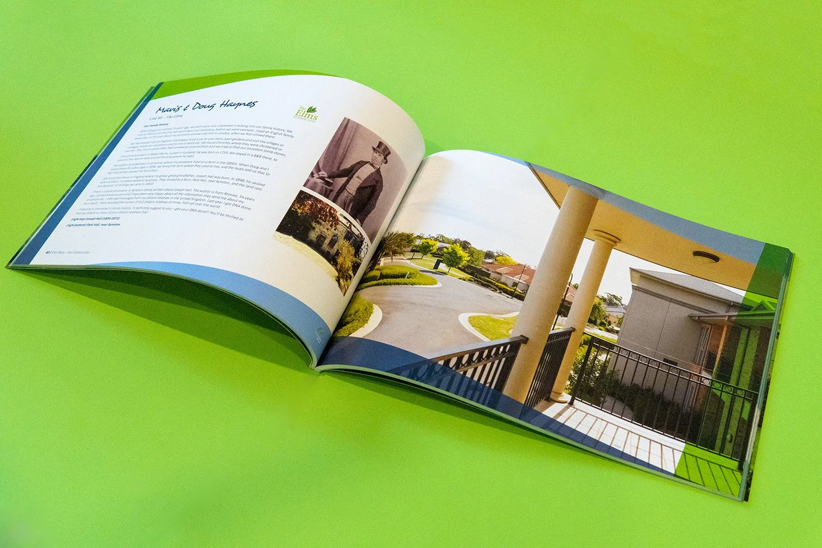 About: Family operated and owned, with 2 retirement estates in Melbourne’s North, Elms Retirement Village encourage a sense of belonging within an inclusive, welcoming community. Elms Retirement Village approached us in developing a booklet that encompasses all they have to offer in a fresh and modern approach that is bright and engaging. We approached this by utilising their brand through fresh greens and bright blues.